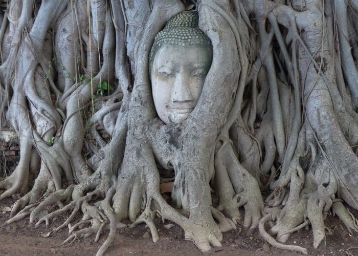 *Explore Wat Mahathat and its iconic Buddha head in tree roots.